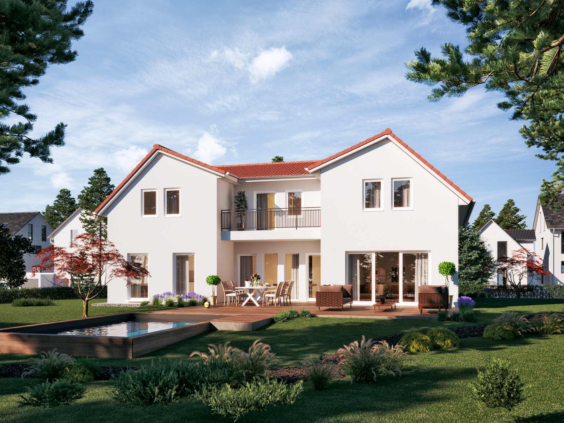 Unser Königstein mit integrierter Doppelgarage haben wir schon in den 90ern nach amerikanischen Vorbildern entworfen. Jetzt kommt es wieder in unser Produktprogramm – optimierter und noch viel schöner. Die H-Form sorgt für eine ideale Aufteilung von Funktions- und Wohnräumen. Der Weg von der Garage ins Haus ist problemlos möglich.