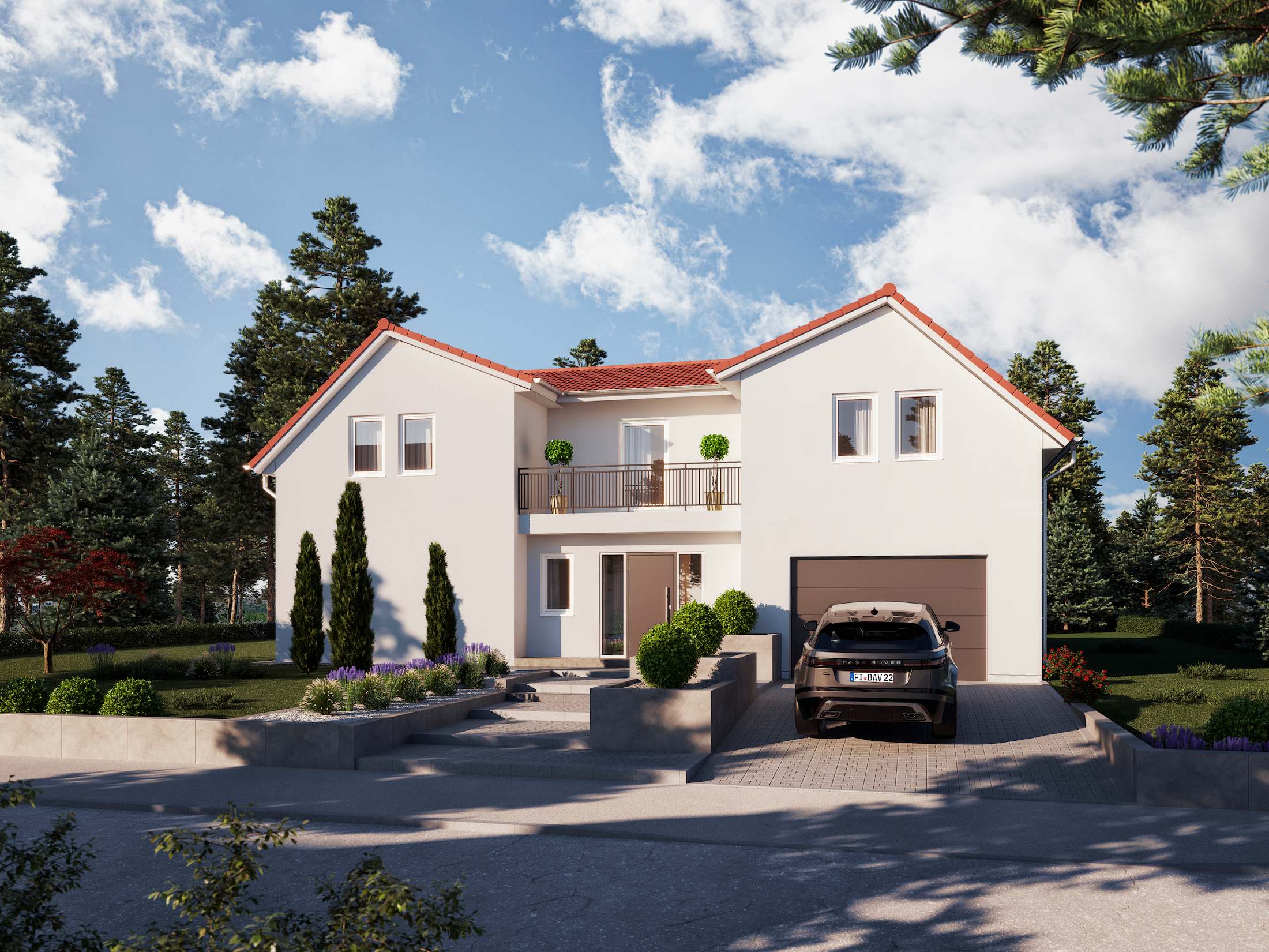 Unser Königstein mit integrierter Doppelgarage haben wir schon in den 90ern nach amerikanischen Vorbildern entworfen. Jetzt kommt es wieder in unser Produktprogramm – optimierter und noch viel schöner. Die H-Form sorgt für eine ideale Aufteilung von Funktions- und Wohnräumen. Der Weg von der Garage ins Haus ist problemlos möglich.
