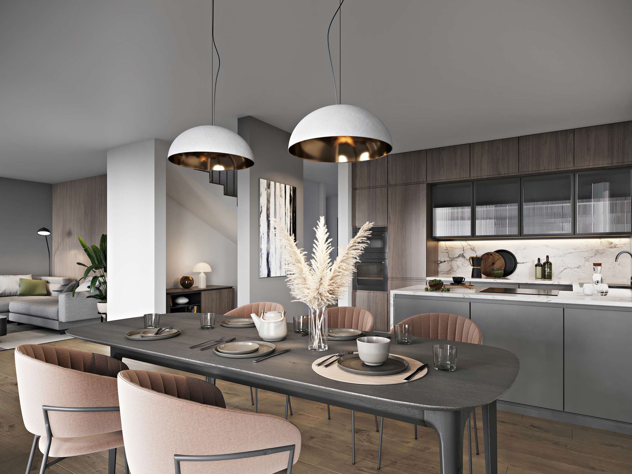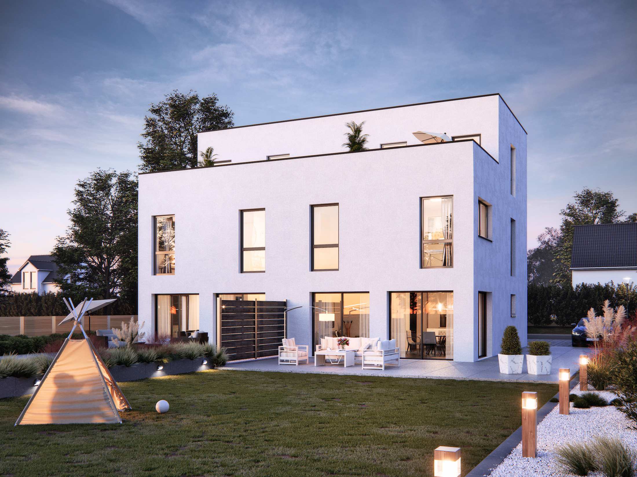 Was für diese Doppelhaushälfte spricht? Moderner und geradliniger Grundriss über 3 Etagen mit Studio und Dachterrasse. Mehr brauchen wir nicht sagen – die Sommernächte können kommen!