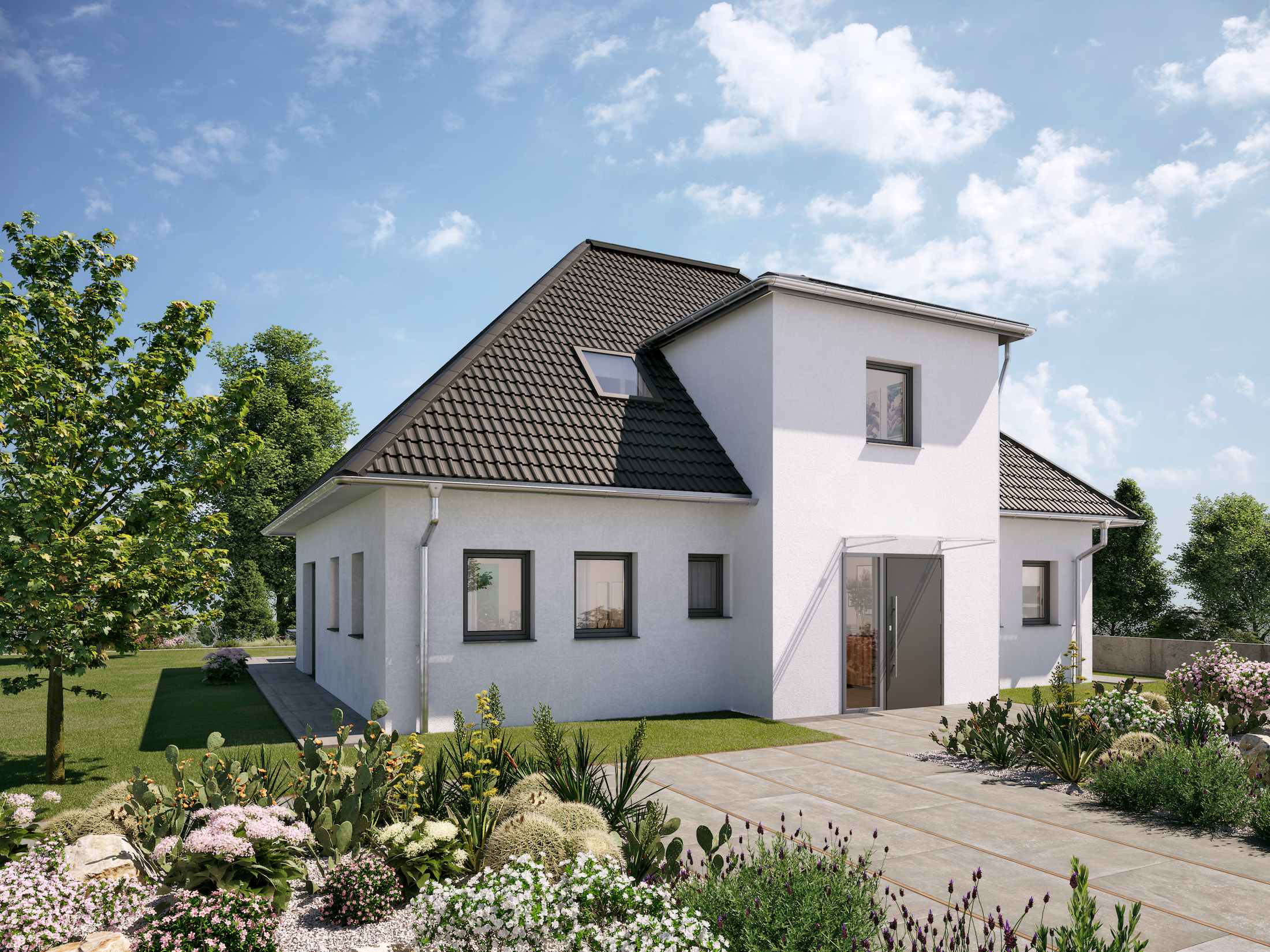 Ein Haus, das für Singles ebenso geeignet ist wie für Familie oder Paare ohne Kinder. Wer die Natur liebt, für den ist der Vollglaserker genau das Richtige. Die eingezogene Terrasse bietet Schutz bei Sonne und Regen und die Trapezgaube macht das Haus zu einem echten Landhaus.